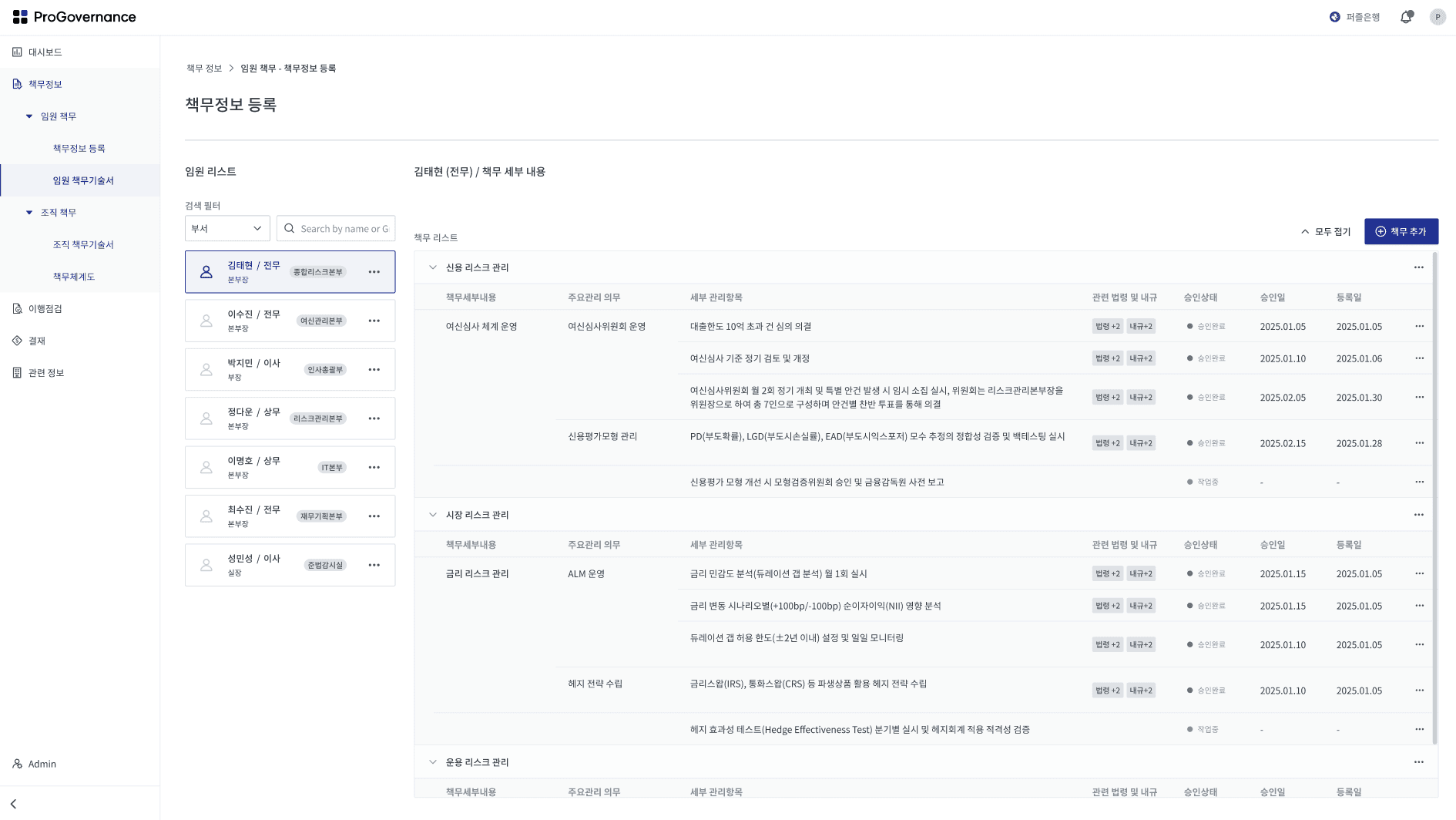 조직 구조 변화와 인사 이동에 맞춰 책무를 유연하게 조정할 수 있으며, 임원 교체 시에도 책무가 자동으로 인수인계되어 지속적인 관리가 가능합니다.