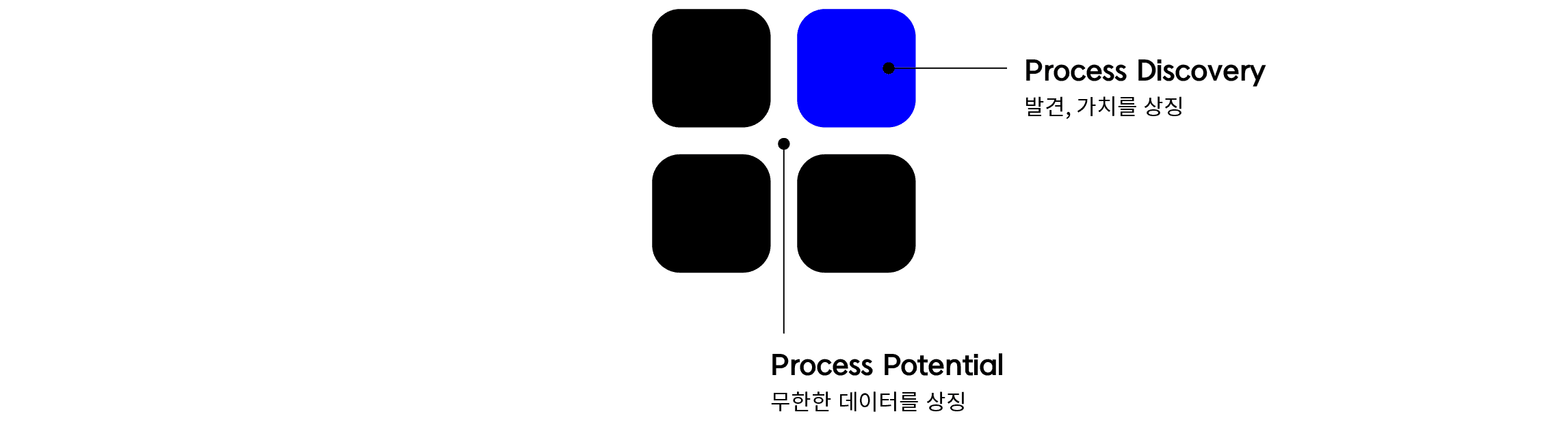 데이터를 형상화한 Black 컬러와 프로세스에서의 발견과 가치를 상징하는 Blue 컬러로 구성되어 있으며,
